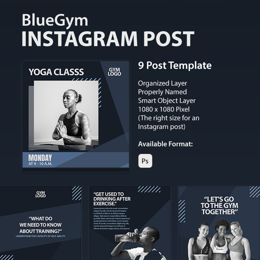 Introducing, BlueGym - Instagram Post Template. Help you create impressive This instagram design is perfect for promotion your gym.